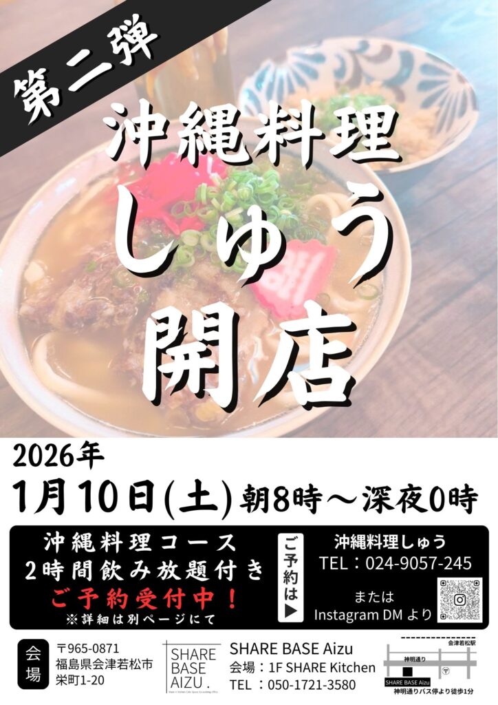 SHARE BASE Aizu シェアキッチンにて沖縄料理しゅうの第2弾が開催決定!